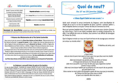Les infos de nos deux paroisses st Jean du mont d'Anzin et Notre Dame de bonne Espérance