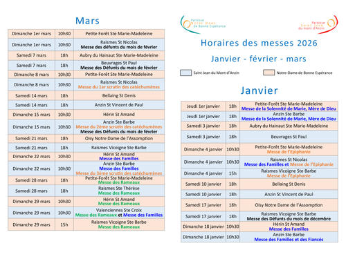 Article publié par response.text()) .then(text => { html = text showLoading = false; })" class="flex justify-center animate-grow-on-hover--small">Marie Anne Verbeurgt • Publié le Vendredi 19 décembre 2025 - 14h15 • 3 visites Livret_horaires_messes_jan_fev_mars_2026 Télécharger 221.3 Ko Télécharger
