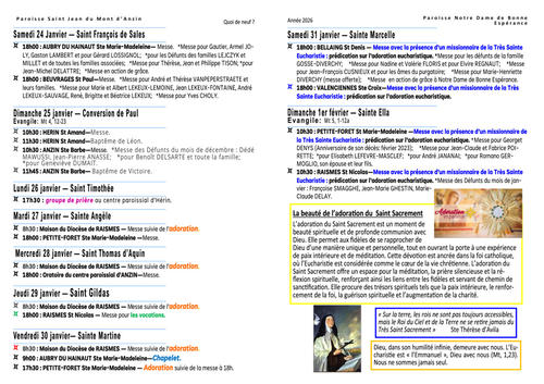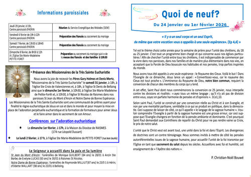 QUOI DE NEUF DU 24 JANVIER AU 1ER FEVRIER 2026