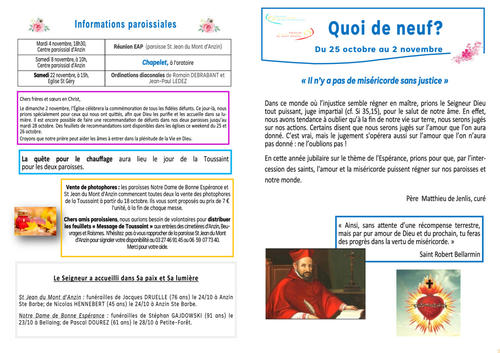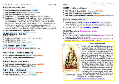 quoi de neuf du 25 octobre au 2 novembre 2025