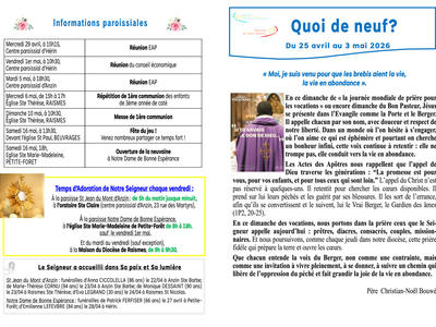 Quoi de Neuf du 25 avril au 3 mai